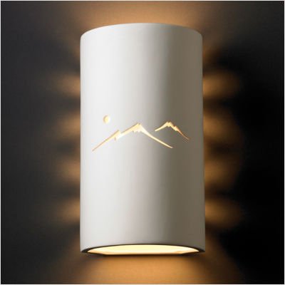 CER-9015-STOC-PALM Finish: Carrara Marble, Cutout Option: Palm Tree Pictured in Bisque Features: -Wall sconce. -Sun Dagger collection. -Available in 30 hand-painted finishes as well as unfinished ceramic bisque which is paintable. -Available in several cutouts and also without cutout option. -Ceramic construction. -Large cylinder shape with open top and bottom. -UL Listed for damp locations. -Eco-friendly. -Made in USA. Specifications: -Accommodates (2) 100W A-19 incandescent or (2) 26W GU24 fluorescent bulbs. -Mounting center: 4.75''. -Overall dimensions: 13.75'' H x 8'' W x 5.25'' D..../ Sun Dagger Open Top and Bottom Large Cylinder Wall Sconce Finish: Carrara Marble, Cutout Option: Palm Tree / Trees For Shade